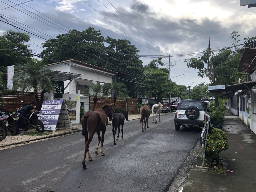Samara itself is a rare gem: a small, unpretentious surf town that forgoes big resorts in favor of small, family-run guesthouses, none of which infringe on the pristine nature of the beach; hosts a smattering of ex-pats, some who have opened dining establishments serving delicious food (I’m thinking of the Italian cuisine at Mama Gui and the baguettes and pastries at the French-owned Boulangerie); where howler monkeys herald the dawning of each new day and free-roaming horses wander the streets of town and the beach. Sure, you can do the zip-line tour, or rent ATVs just like in most beach towns on the Nicoya Peninsula, but it seems most people come here to surf the mellow waves, relax on the uncrowded beach, peruse the fresh fruits and vegetables at the weekly farmers market, feast on the fresh ceviche offered by a fisherman from his vehicle parked in town and enjoy the pura vida vibe that makes Costa Rica so special.