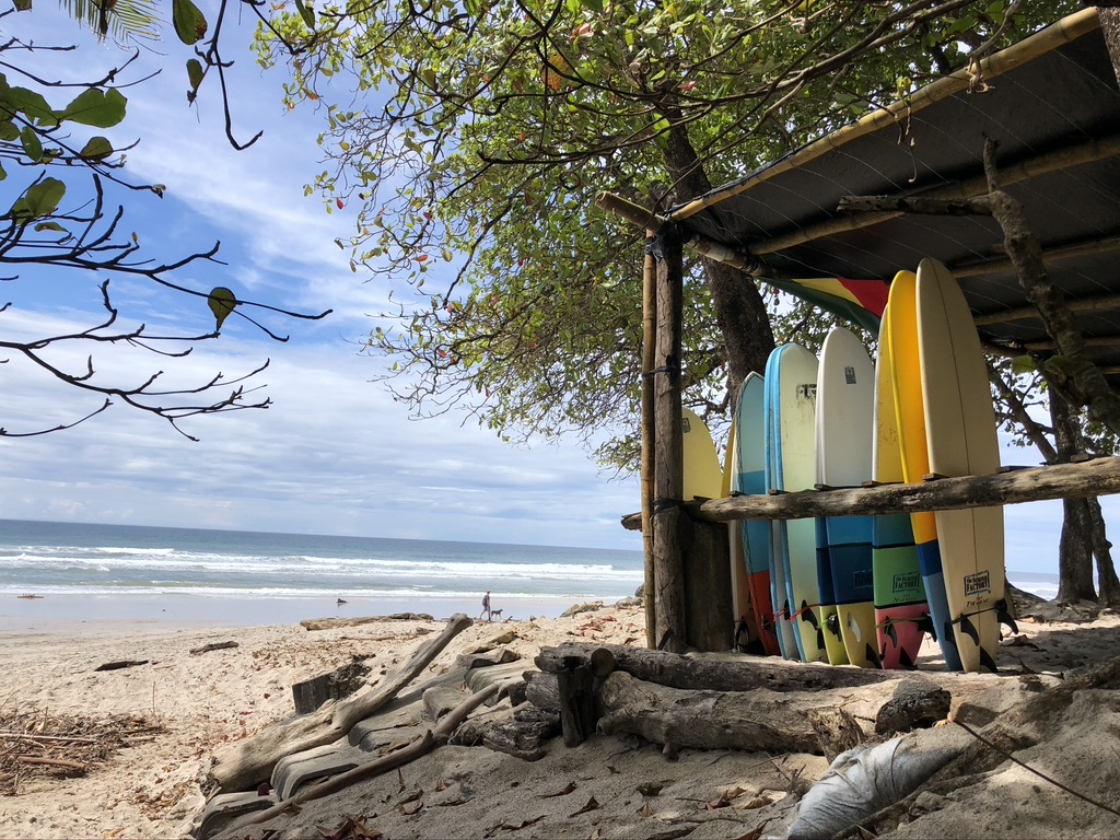 Santa Theresa, for some reason, is a backpackers beach dream. Ask any traveler who’s been and they’ll tell you the beach is one of the most beautiful in the country, the surfing is top-notch and town has a chill, laid-back vibe perfect for relaxing. The beach is beautiful, but Costa Rica has a bevy of really beautiful beaches; the surfing is very good (I’ll have to trust them on this one), but for beginners and those looking for lessons I think there are certainly better places to learn; and town certainly is laid back, with folks wandering the dirt road through town barefoot, enjoying the hip vegan cafes and exploring the back roads on quad- and motor-bikes. On closer inspection, however, I realized that folks were wandering barefoot because after a rain the dirt road became a flip-flop sucking mud bog; the quad-bikes, which apparently all lack any kind of muffler system, would tear up the muddy street, or, if and when it dried out, would raise clouds of dust which would settle on everything within a hundred feet of the road, including the foliage, parked vehicles, buildings and my vegan chocolate cake (to tell the truth I couldn’t tell what was cake and what was dust). It’s quite possible that the road through Santa Theresa is the worst road in all the southern Nicoya, which now you know is pretty bad. We did find one outstanding aspect to our visit there – the food (I’m not considering vegan chocolate cake to be food). From the simple rotisserie chicken and sides at Chicken Joe’s, to the delicious tacos and craft beer (passion fruit ale!) at the Eat Street outdoor food court and the incredible wood-fire grilled mahi-mahi at the Argentinian-inspired El Facon, this was some of the most consistently good food we had enjoyed anywhere.