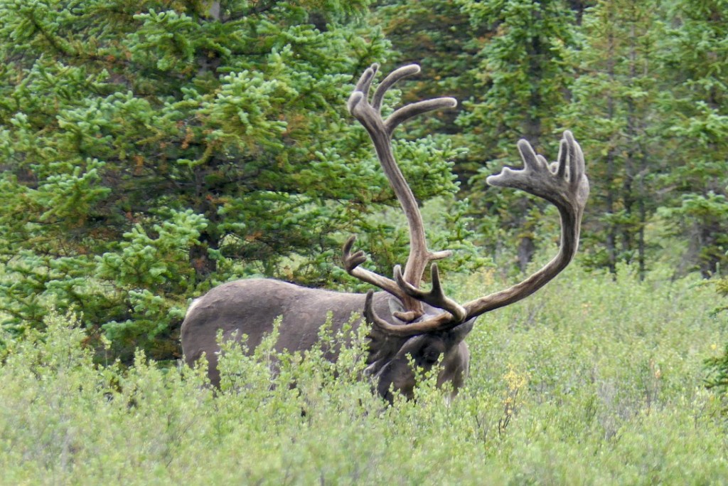The next morning dawned . . . clear and sunny! The plan was to make the 4+ hour drive down to Anchorage, return our rental car and catch our late afternoon flight to Juneau for the start of the Inside Passage portion of the trip. But we quickly decided to alter the plan to accommodate yet another trip into the national park to see if any other wildlife would present itself (bears please!) or the mountain could be seen. Our persistence paid off -not only did the mountain reveal itself, but we spotted two more caribou along the drive. By the time we left the park, the clouds moved back in and the rain began to fall once again. Lucky us!