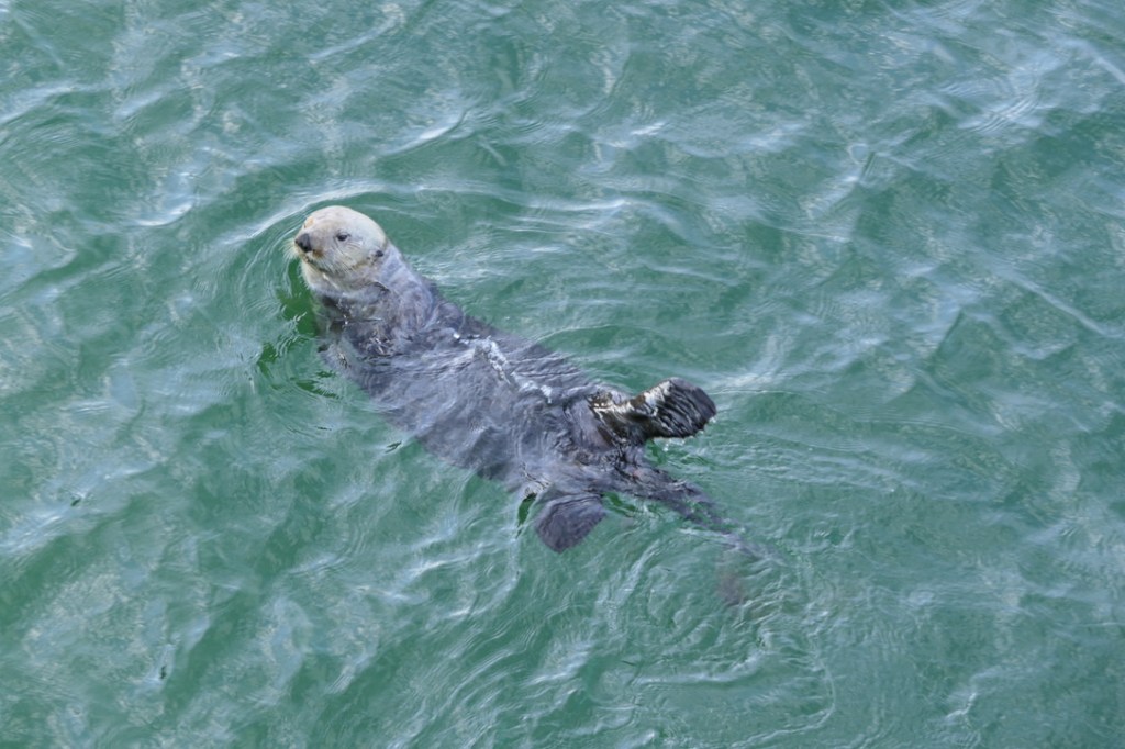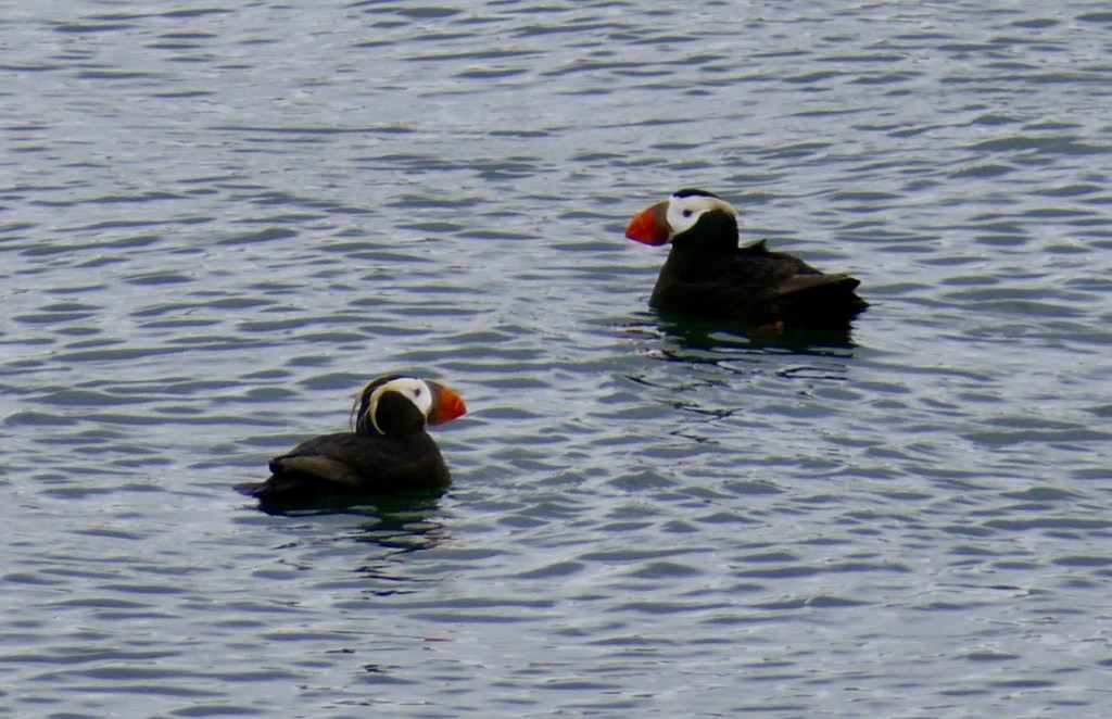 The final leg of our trip started five days prior with a stop in Glacier Bay National Park and Preserve. Arriving on a short flight from Juneau we were shuttled to the Glacier Bay Lodge, which sits right on the waters of Bartlett Cove at the southern end of the bay. It would be a convenient base (if only for one night) to explore the bay aboard the only boat tour allowed in the park, which departs from a dock just below the lodge. Bright and early the next morning as we headed to the lodge’s dining room for a quick breakfast, we stopped to watch a mother moose and her calf grazing just steps from the restaurants front door, before moving off into the thick woods. We were seated at a table just in time to hear the folks sitting next to us lament that they had yet to see a moose during the entirety of their eight day Alaskan trip. We didn’t have the heart to tell them of our sighting moments ago (that brought our total to 13). After breakfast we boarded the high-speed catamaran and set out into the waters of Glacier Bay. The onboard National Park naturalist offered commentary on the ecology and geology of the park, the history of the Natives who first inhabited the area, the arrival of Western traders and trappers, and provided plenty of information on the wildlife. And there was plenty of wildlife – harbor seals played in the waters of Bartlett Cove as we departed, sea otters floated on the waters surface near the shoreline, puffins and other seabirds populated the rocky islets we passed, humpback whales could be seen spouting and flicking their tails in the distance (the whales were in protected areas of the bay which prevents the boat from altering it’s course to get closer to them), brown and black bears prowled the rocky coast and mountain goats appeared unfazed as they clung to steep rocky faces that dropped precipitously to the waters edge. The final attraction was arriving at the face of the immense Margerie Glacier, a 21-mile long tidewater glacier at the northern reaches of the bay.