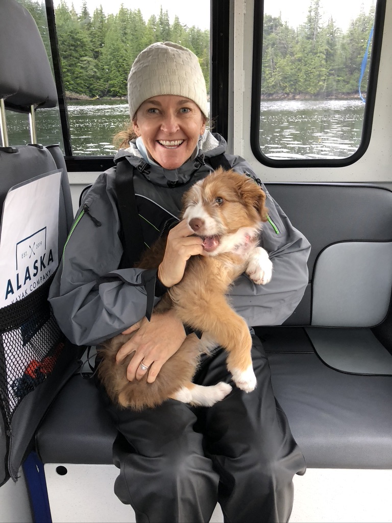 Ketchikan is a little town – though it’s population of just under fourteen thousand folks ranks it as the state’s fourth largest city and is home to a busy cruise ship port. The area around the docks is lined with the typical cruise port trinket shops, jewelry stores and tour operator stalls, interspersed with dive bars and restaurants offering fresh Alaskan seafood. COVID killed the cruise business last year and ships had just started returning to Alaskan ports during our visit. The disruption in business forced small operators like Tim and Mary to cater their trips to the few independent travelers that came last year, and they’re much happier for it. Accepting a maximum of only four guests per trip (Heather and I were the only ones this day) helps them offer a more intimate experience customized to that day’s guests desires. Having their adorable eleven-week old puppy ‘Mudpuddle’ aboard didn’t hurt either.
