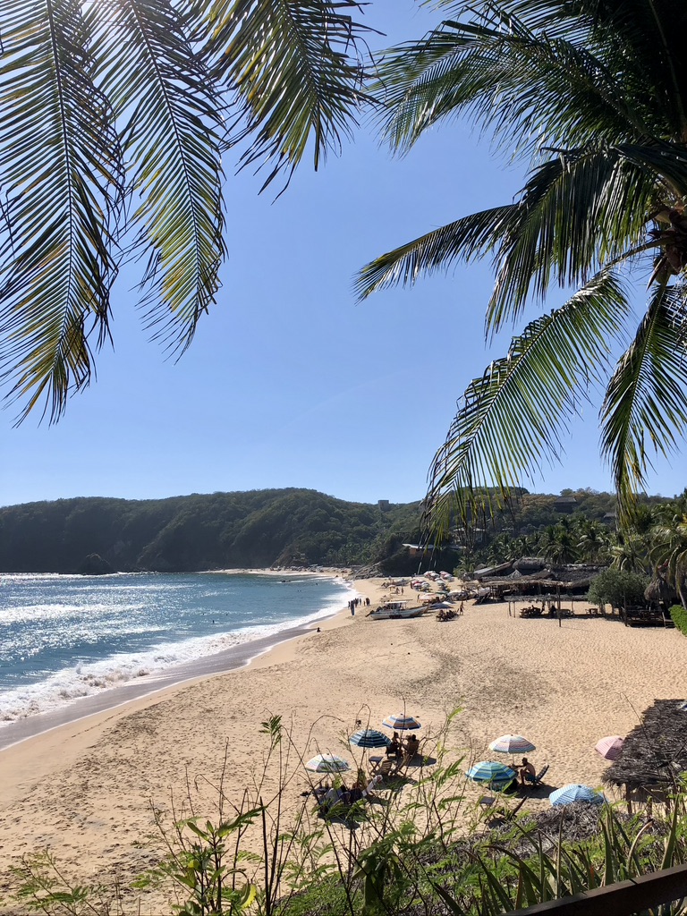 Bob Marley’s Waiting In Vain wafted from the single speaker to our spot in the hammocks. Looking beyond the tables under the palapas, and past the loungers under colorful umbrellas, the Pacific glistened under the mid-day sun. It was hot, and no one was out on the beach. In fact, no one was in the water. Or at any of the tables, hammocks or loungers at La Punta, the restaurant on Playa Zicatela where we had chosen to spend a Friday afternoon. There simply weren’t any visitors around, explained our host, as he handed me a frosty Pacifico beer – the crowds wouldn’t show up until Christmas, and it was still early in December. We had braced ourselves for a crowded, raucous scene on Puerto Escondido’s most famous beach, but instead, we enjoyed one of the most relaxing afternoons ever – swinging in our hammocks, sipping cold beers, listening to the music, eating a plate of fish and salad and watching the sun dip towards the ocean.