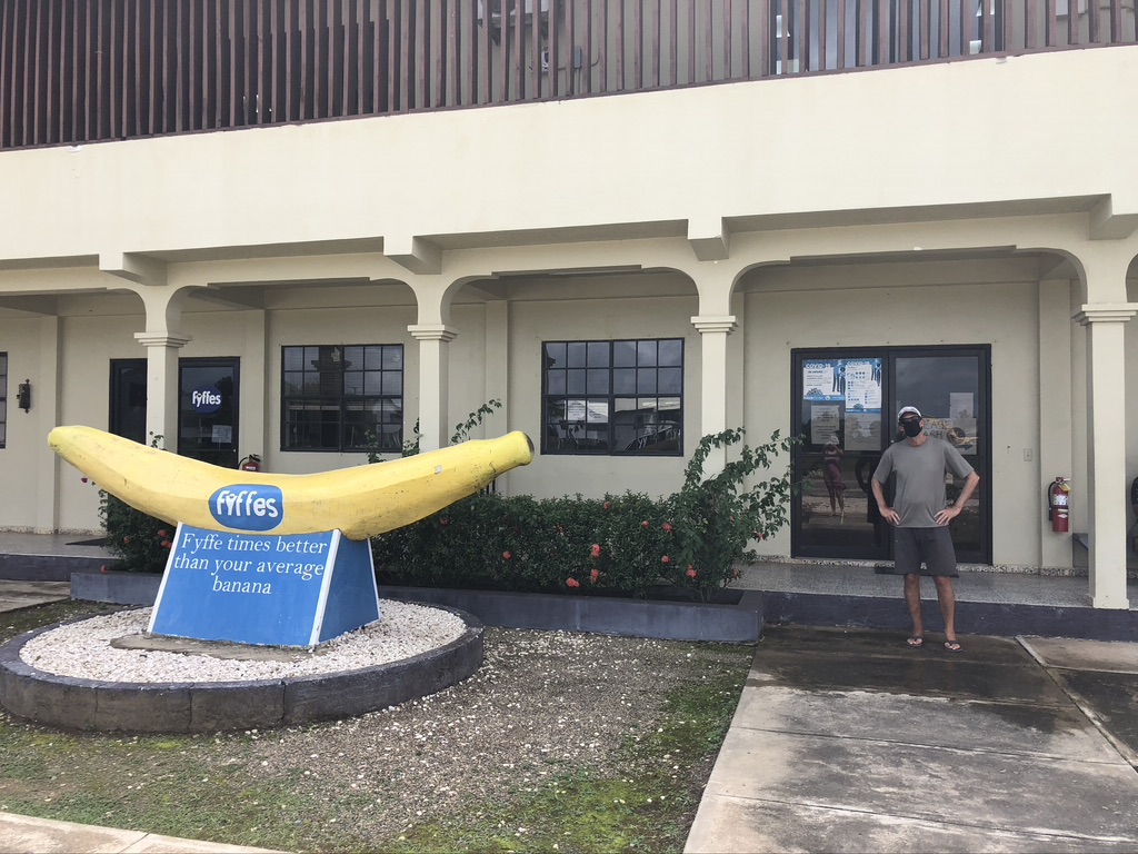 The Hokey Pokey water taxi connects Placencia village with the small town of Independence on Belize’s mainland. The service mainly ferries the local population from their homes on the mainland to jobs on the Placencia peninsula. One day last month Heather and I took the trip across the lagoon because it was time for us to renew our visitors permit so we could remain in the country beyond the 30-day allowance granted to tourists upon their arrival. From all accounts, this is a pretty easy process: after the twenty minute boat ride one steps into a waiting taxi, gets driven to the district immigration office on the outskirts of town where you present your passport and the required fee ($100 for each 30-day extension!), get a fresh visitor’s permit, then return to Placencia, where you hope to be seated at one of the beachfront bars by the start of happy hour. In our case, the plan doesn’t quite work like that. We have no problem getting a seat on the water taxi and the ride across the lagoon and up Mango Creek is pleasant. As we disembark, a knot of taxi drivers are waiting and call out to us “Going to immigration?”. ‘This is going to be easier than I thought’ I say to myself. Our driver quotes a round-trip price for the drive to the office and assures us he’ll wait while we complete the formalities and have us back to the dock in time for the water taxi’s return to Placencia. In minutes we roll up to the nondescript building housing the immigration office, which lacks any signage that identifies it as such. It does, however, have a large cement banana in front. When we step to the window, the officer asks if we have proof of our hotel reservations for the following month, which surprises us, but we answer that we do. Then she asks for a copy of a bank statement. Umm. Huh? Momentarily stunned by this request, we regroup and say that, yes, we do also have this information available, “If we can just connect to wifi, we’ll show you all that on the phone” Heather explains. “I need written copies” she says. Now we’re really reeling. I’m seeing an entire day wasted as we have to return to Placencia and find a way to print out the information she’s requested, only to spend another day returning here to submit it, and can only picture us at the beach bar happy hour having accomplished nothing. The officer then adds, “There’s a copy shop in town. We’re open until 3:30”. We dash back to the waiting taxi and our driver, shaking his head over this bureaucratic runaround, drives us back into Independence and stops at the internet cafe/print shop/party-supply store, where a young gal talks us through how to get all our required documents to her through WhatsApp, then prints out the eight pages we need. Once again we load into the taxi, make our way to the building with the big banana out front and present our documentation to the waiting officer. She looks through the pages then hands them back while directing us to have a seat on the bench outside her window. While clutching our stack of printed pages in her hand, Heather starts to say “Why couldn’t you just have looked at this on the phone . . .” but before she can finish the window has slammed shut and we’ve got no alternative but to have a seat on the bench where we stare at the cement banana until the window opens and a hand appears holding our passports. Finally, we make the drive back to town and the dock where we board the Hokey Pokey for the return trip. The rum drinks at happy hour are enjoyed with a well-deserved sense of accomplishment!