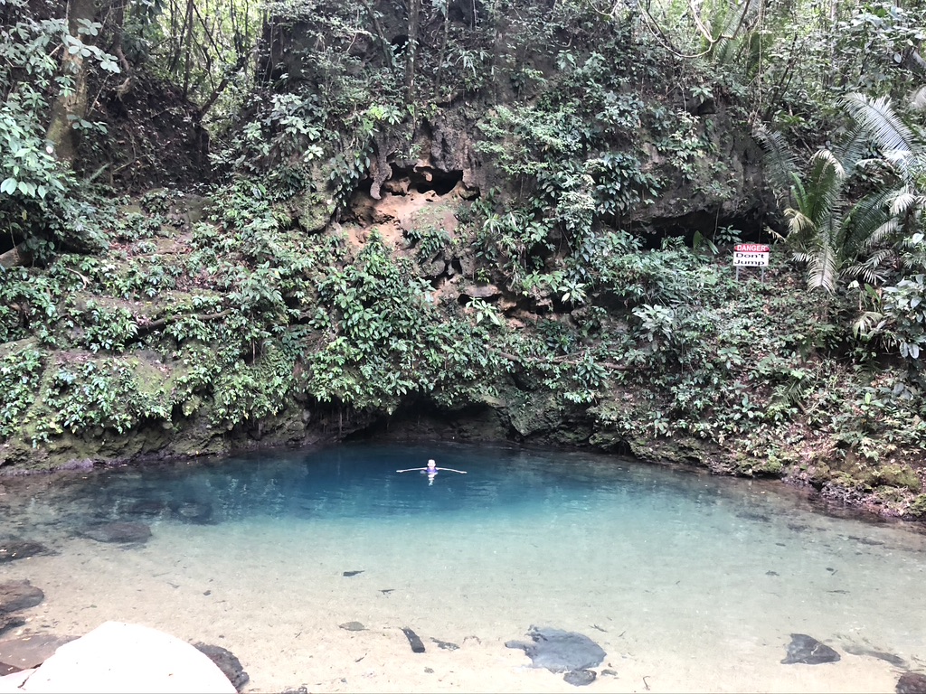 Our four days in Cayo are over too soon (like our tubing tour) and we regretfully depart for the return trip to Placencia. Looking at the map of the route back we notice there’s one stop we could make to break up the trip – St. Herman’s Blue Hole National Park. The park contains some walking trails, a cave system and a feature that sounds perfect for a break from the 90-degree heat of the day – a jungle pool from which the park gets its name. This spring-fed sinkhole proves to be a refreshing stop and we arrive in time to have it all to ourselves. After a swim, we head back to our car just as a tour bus pulls into the parking area. Perfect timing! We’re back on the road and reach Placencia by mid-afternoon, refreshed by our four-day adventure and ready for three more weeks of beach-time.