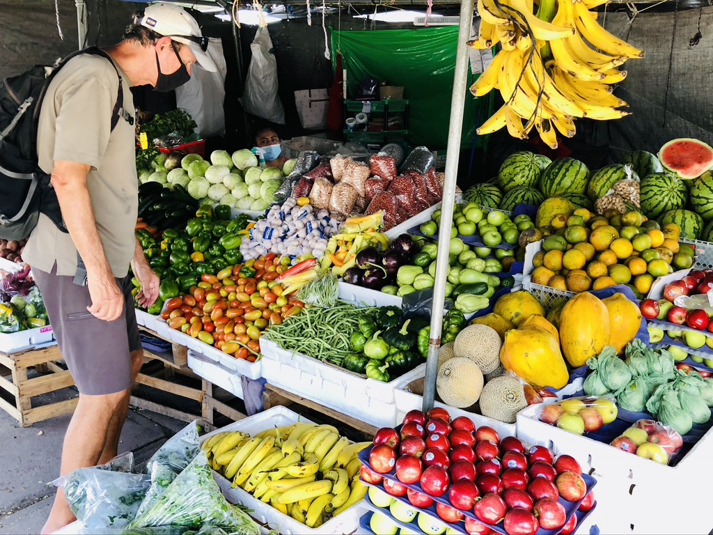 After an early breakfast we’re on the road for the start of day 2. Our destination for the morning is the Mayan ruins at Xunantunich, tucked into the jungle just shy of the Guatemalan border. To access the archeological site, you first have to cross a river by a hand-cranked ferry. The crossing takes about a minute, then we’re on our way again to cover the last mile to the parking lot at the ruins. Getting an early start means we arrive before the tour vans and buses show up, so we can stroll the grounds and climb the various structures crowd-free. By the time we leave at 10:30, the parking lot is filling up and the temperature is also climbing towards triple digits. We welcome the refreshing AC in the rental car on the drive to San Ignacio, where we’ll visit the daily market. But along the way we detour for a visit to Black Rock Lodge, set deep into the forest overlooking the Macal River, bounded by steep canyon walls on both sides of the valley. We grab a couple seats in the open-air restaurant, order some drinks and spend an hour watching the river and the profusion of birds that visit the feeding platform that sits just below us. We decide against staying for lunch as we have our hearts set on dining at the San Ignacio market, so we return to the car and head into town. The market is a collection of stalls offering local produce and meats from nearby farms, clothing and souvenirs. But we’re here for the food so we head right into the middle of the market where two rows of stalls are offering a variety of local dishes. We find a couple stools at one of the stalls and order a plate of grilled chicken (accompanied by coconut rice and beans, mixed salad and salsa), two pupusas (cornmeal cakes stuffed with ground pork, beans and cheese then grilled, served with a side of cabbage salad) and fresh watermelon juice. The food comes quickly and we dig in, pausing only long enough to grab several pineapple-filled empanadas from a passing vendor to have for dessert afterwards. Completely stuffed by our $6 lunch, we wander the rest of the market and eventually pick up some fresh fruits to take back to our bungalow. Our final stop on the way home is the Green Hills Butterfly Ranch. We wander through an enclosure holding hundreds of butterflies as well as sit and observe dozens of hummingbirds buzzing around several feeders. Heather reluctantly agrees to pull herself (and her camera) away from her fluttering friends so we can make it back to our lodge before dark.