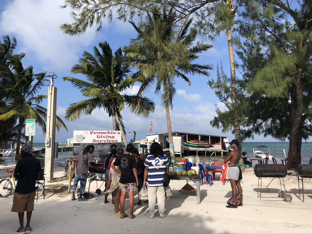 If one is inclined, there are activities on offer – snorkeling and diving trips, sunset cruises aboard a catamaran and fishing charters are available. But most visitors seem content to do nothing more than relax, enjoy a meal and retire early (or maybe that’s just us). We certainly don’t mind spending most of the morning and a chunk of the afternoon on our terrace, enjoying the view and the breeze. When the fry jack breakfast wears off we’ll stroll into the village and find dinner – perhaps a jerk pork sandwich at the Sports Bar (where the ex-pats flock for happy hour rum drinks), grilled fish at Maggie’s Sunset Kitchen or a simple plate of chicken, rice and beans, slaw and a fiery habanero salsa from one of the roadside barbeque grills that set up in front of the beach at the towns north end.