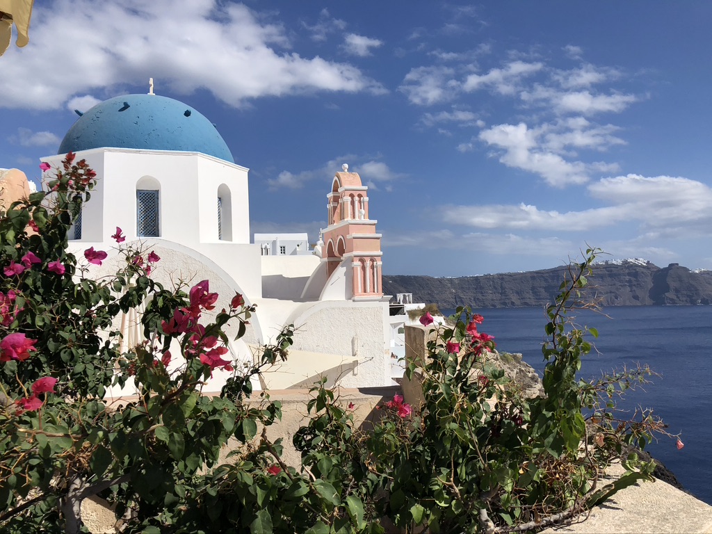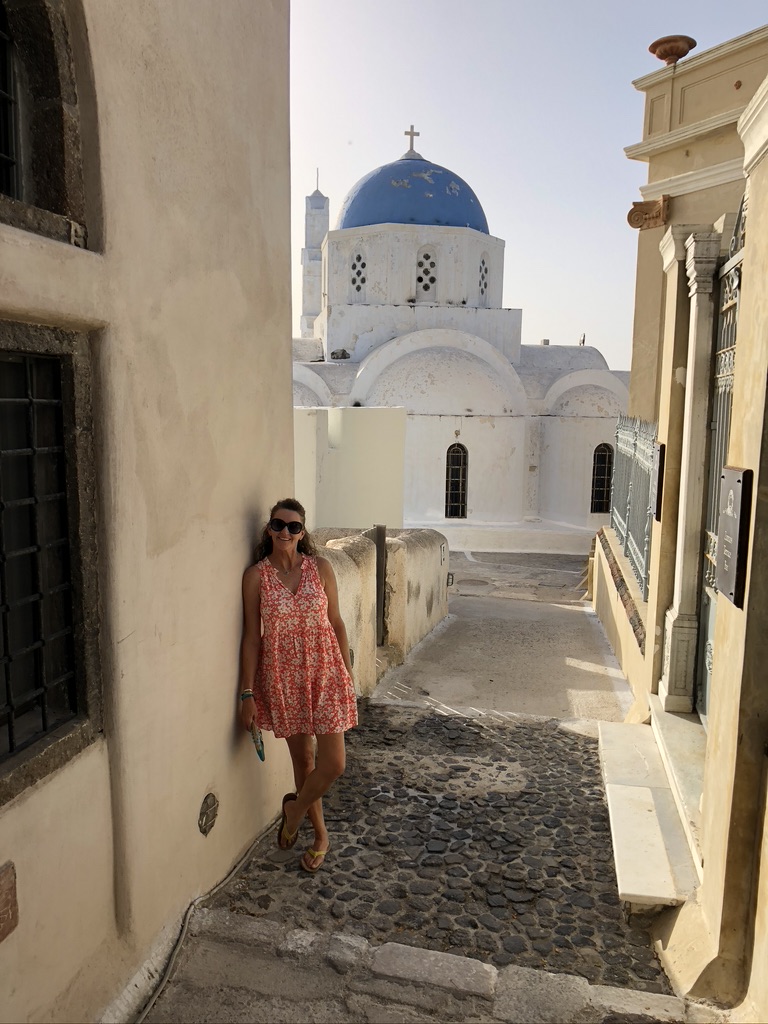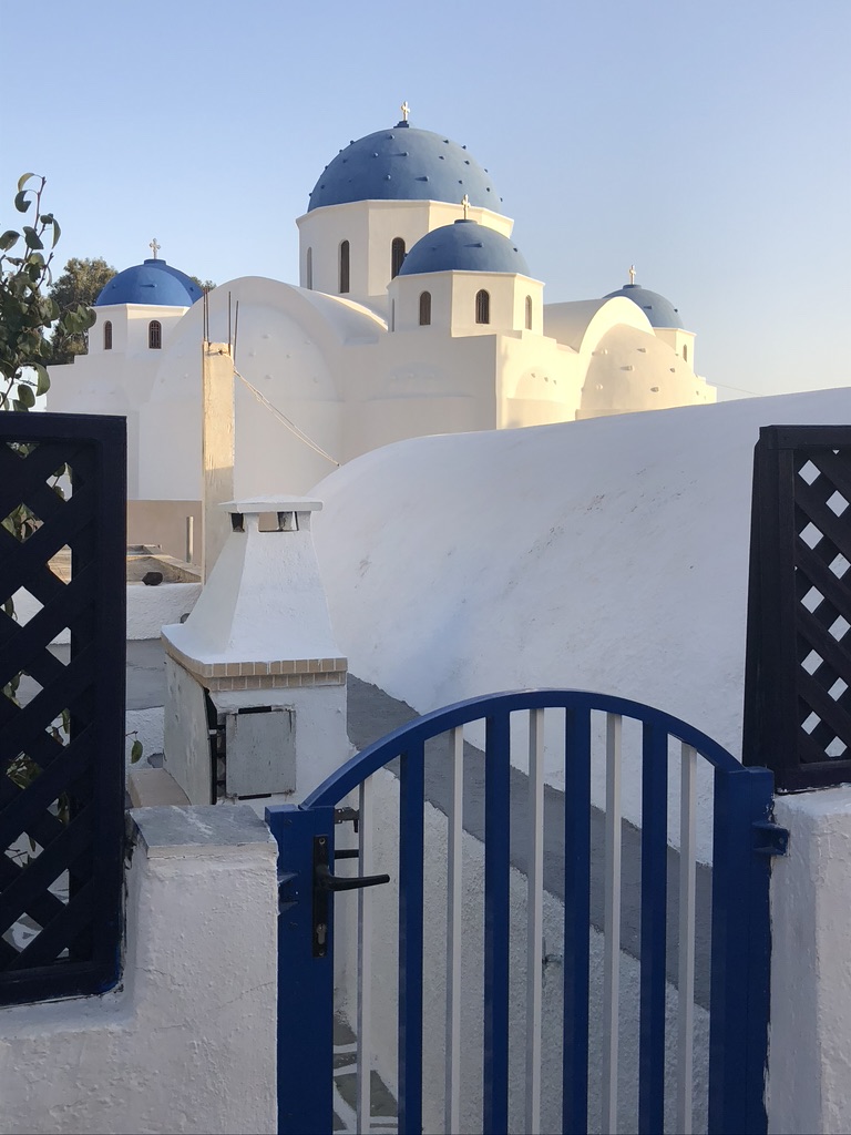 Santorini was the starting point for our six-week European trip. Having visited the island twice before, we planned on spending just four days here, mainly for the chance to rest up from what turned out to be a grueling day of travel – and by ‘day’ I mean twenty-seven hours. At the last minute our first flight of the journey was canceled, prompting a five-hour drive to New York City before our overnight flight to London, where we spent seven hours before boarding our flight to Santorini, which then sat at the gate for another one and a half hours before departing for the four-hour trip to Greece. Arriving well after dark, we were happy to find Kostas, from Cool Cars, who was supplying our rental car, still waiting in the airport parking lot. After a brief inspection of the vehicle, signing a few forms (it’s all Greek to me!) and paying with the Euros we had just gotten from the airport ATM, we were off to Perissa beach, on the island’s southern shore. Rolling down the windows we let the warm air wash over us as we passed by the quintessential whitewashed stone buildings that are so iconic of Santorini. Arriving at our guesthouse we checked in, dropped our bags and fell into bed, eager for sleep and looking forward to a few days refreshing all our Greek memories: grilled fish at the seafront tavernas; gyros wrapped in warm, pillowy pita; crisp white wines; terraced vineyards baking in the sun; lonesome blue-roofed chapels tucked into mountainsides, ruins of old windmills . . . When I woke the next morning the sun was already streaming through the open windows of our room, the brilliant blue of the sky was visible and a slight breeze ruffled the cedar and olive trees. It was so good to be back in Greece. My reverie was broken moments later when a cry arose from next to me “GET ME COFFEE!!!”.