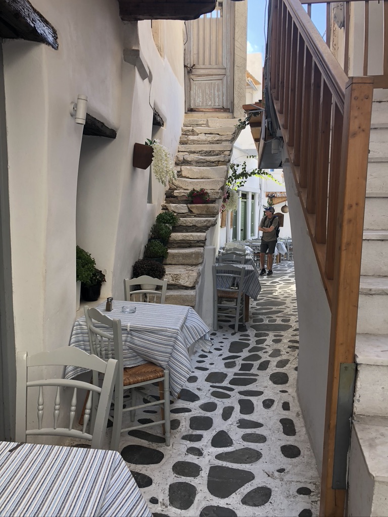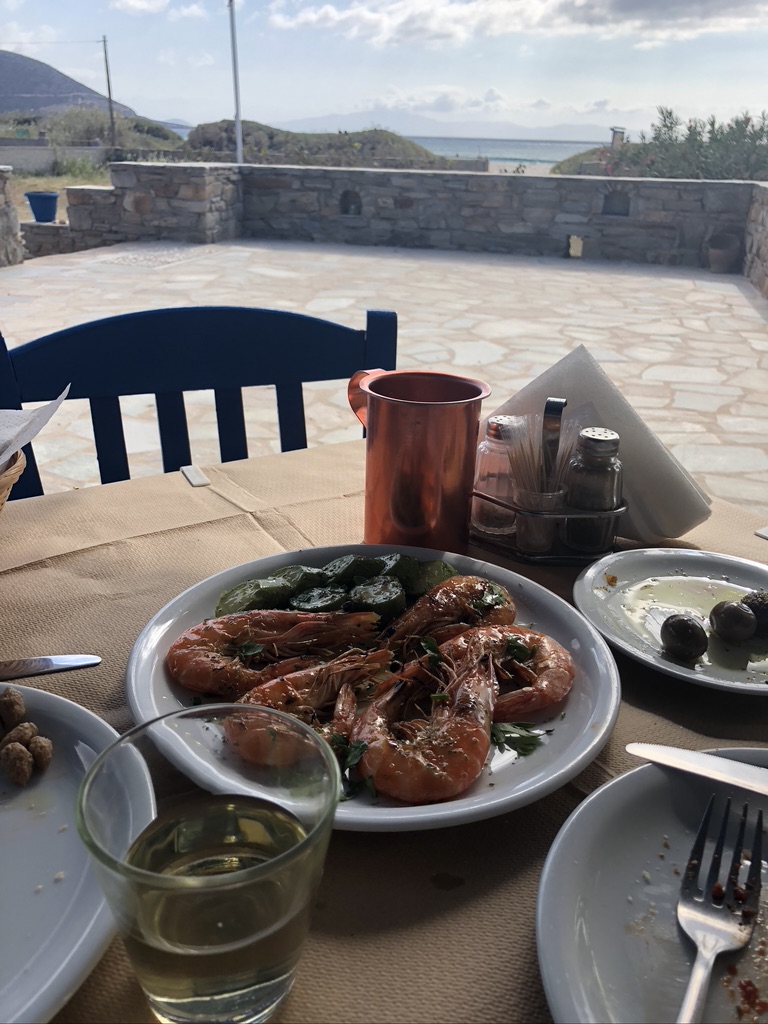 We spent one day in the port town wandering the maze of lanes in the ‘old market’ area; climbing up to the ruins of the old Venetian castle for the views over to Paros, a neighboring island; visiting the ruins of the temple of Apollo, and finally, indulging in fresh seafood offered at one of the waterfront tavernas.