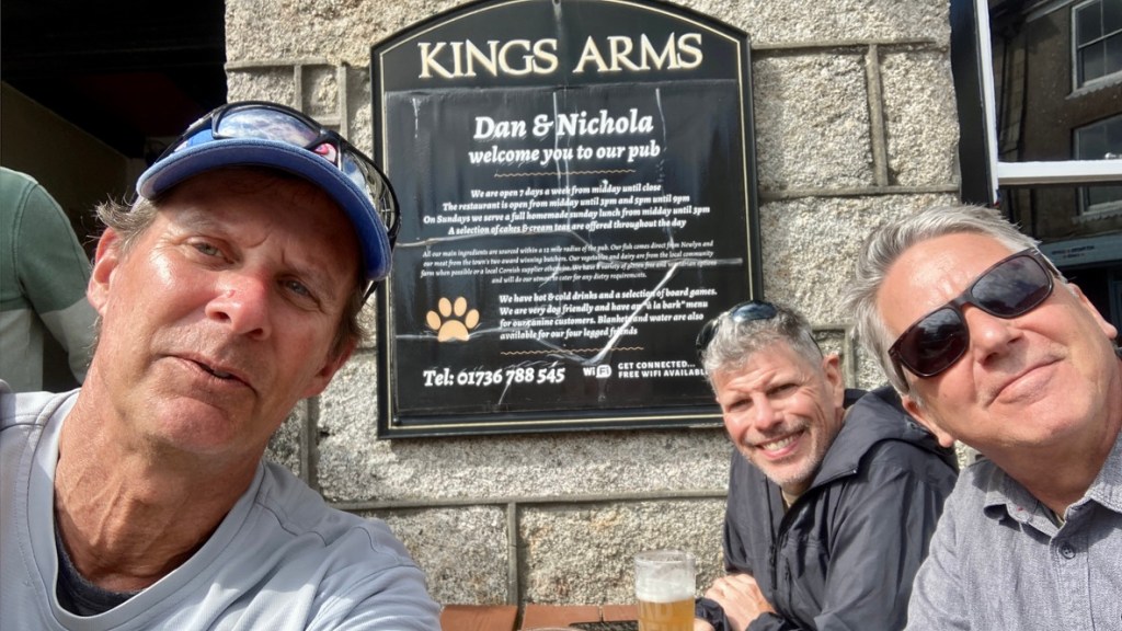 Our final day began with a climb out of Porthcurno to follow the cliffs before descending to the incredibly quaint hamlet of Penberth Cove, consisting of a cafe and a handful of cottages situated amongst a riot of colorful flowers. Several more climbs and descents reminded us we weren’t quite done yet, but after the final drop down to pretty Mousehole, we finished on four miles of pavement through Newlyn and into Penzance, ending at the comfortable pub at the Longboat Inn. The following day we would go our separate ways – Mark returning to Washington D.C., Matt and his wife heading south to Portugal, and I would make my way home to Colorado to be reunited with Heather, where all the fabulous recreation opportunities of a summer in the Rockies awaits.