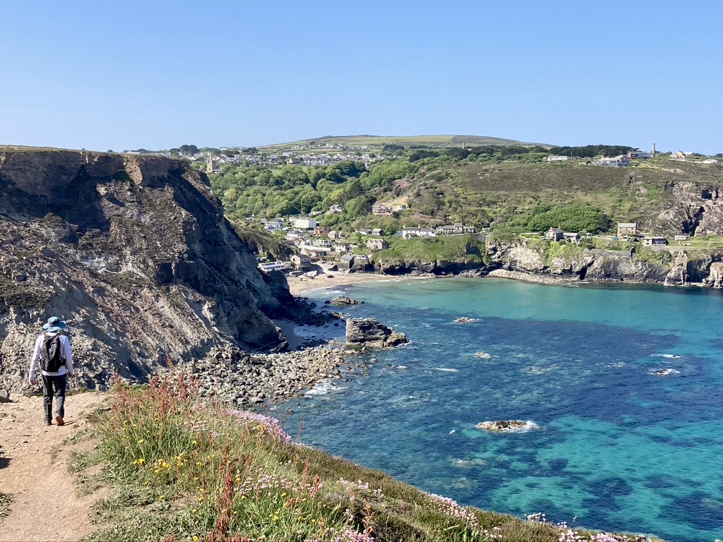 We wouldn’t be starting every day with the ‘full English’. At the Seiners Arms in Perranporth, I enjoyed avocado toast topped with a poached egg and drizzled with a citrus vinaigrette. A very civilized (and with less arterial stress) way to start day 2. We easily fell into the rhythm of walking the easy paths on the clifftops, brushing past clumps of blooming flowers, including sea thrift, bluebells, foxglove, heather and the small pink flower of Jupiter, which would at times fill entire fields. After striding effortlessly for a mile or so we would come upon a steep descent which would soon be followed by an equally steep climb. By midday we reached Trevaunance Cove and the small village of St. Agnes. Here we would enjoy our first Cornish pasty, a meat-filled hand pie that is one of Cornwalls most famous foods. They would prove to be the perfect lunch item, found in every village bakery, able to withstand several hours of travel in our packs, and both delicious and filling. Pushing on from the pretty cove at St. Agnes we reached our days destination at Portreath, in time for a tasty pint at our guesthouse, the Portreath Arms. While there was plenty of beer on offer, it being a Sunday there was no food available after 3pm. After trying a couple other pubs, and failing to find anyone offering dinner, we settled on the only option available – a Chinese takeout. So rather than fish and chips or a steak and ale pie, we dined on pork with beansprouts, sweet and sour chicken, beef and mushrooms, fried rice and prawn crackers.